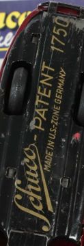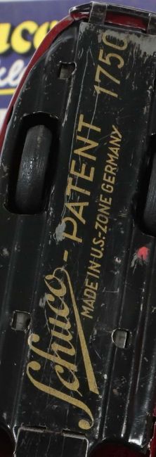 Schuco, 1 x Studio 1050 mit OK "Schuco-Studio", ca. 1950er Jahre, blau, etwas Zubehör, 1 Felgenschraube abgedreht anbei, Uhrwerk läuft; 1 x Schuco Kommando 2001, made in Germany, ca. 1940/50er Jahre, rot, Fahrwerk im Chassi verschoben; 1x Schuco Patent 1750, ca. 1940/50er Jahre, made in US Zone, weinrot, vordere Stoßstange/Kühlergrill fehlen, Uhrwerk läuft; bespielt, Altersspuren, Fehlstellen.