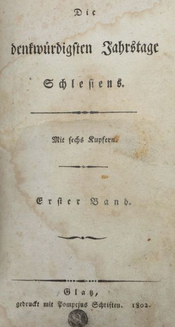 Glatz, Pompejus, 1802/03/04, 4 Bde., 403+430+436+432 S., je mit Register, mit insg. 22 (6+6+4+6; vollständig) ganzseitigen Textkupfern, Pappeinbände, Klein Oktav. Stärkere Altersspuren, part. besch./fleckig, Paginierungsfehler, S. 387-390 des ersten Bandes fehlend.