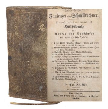 Fehlerfreier Faulenzer oder Schnellrechner, Reutlingen, Fleischhauer, 1853, 104 S., Halbpergamentband, Kleinoktav. Stärkere Altersspuren, part. besch., handschriftliche Eintragungen.