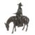 China, 19./20. Jh., Metallguss (mit Gusskern) aus 2 Teilen, Reiter gekleidet mit Hut und schlichtem Gewand auf ornamental verzierter Pferdedecke sitzend, mit beiden Händen eine ausgebreitete Schriftrolle haltend, H: ca. 44,5 cm. Reiter abnehmbar, Altersspuren, ber.