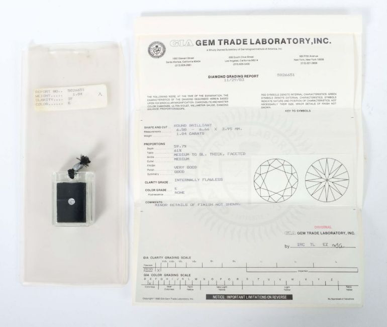 IF/E in orig. Verpackung verplombt. Inkl. orig. Rechnung vom 11.6.1986, Bucherer AG Basel, über 22.800,- CHF sowie GIA Zertifikat vom 29.11.1983.