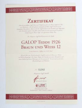Steiff, 1 x Braunbär Molly, Nr. 100048, Etikett, L: 30 cm; 1 x Bär auf Rädern, Replika, L: 16 cm; 1 x Jungbär, blond, Nr. 031205, L: 14 cm; 1 x Eisbär auf Rädern, Nr. 420177, L: 22 cm; 1 x Galop-Bären, Jungbärenpaar, weiß und braun, auf Rädern, Halsbänder, Zertifikat Nr. 01062, limitierte Auflage 2000 Stk., unbespielt, alle m. Kopf und Fahne, 1 x Plakette, 2 x Etikett.