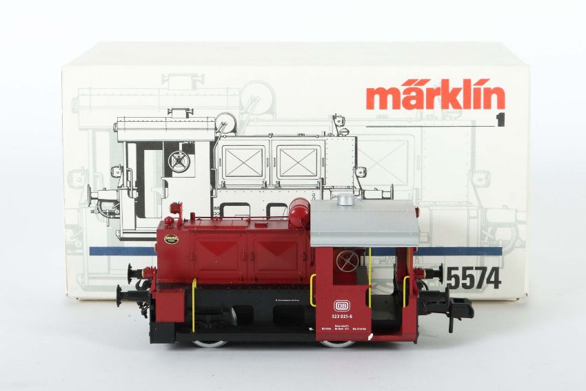 Märklin Spur 1 Nr. 5574, KÖF II, BR 323, rot/schwarz, Kunststoff, im OK, kaum bespielt, geringe Altersspuren, auf Funktion nicht geprüft, Karton m. geringen Lagerspuren.