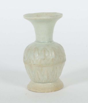 China, Song-Dynastie, ca. 960 - 1279, Qingbei-Keramik, beige-weißer Scherben, glasiert, Balusterform, reliefiertes Blütenblattdekor, leicht ausgestellte und erhöhte Standkante, H: ca. 11,4 cm. Standkante min. best. Provenienz: Bayerische Privatsammlung.