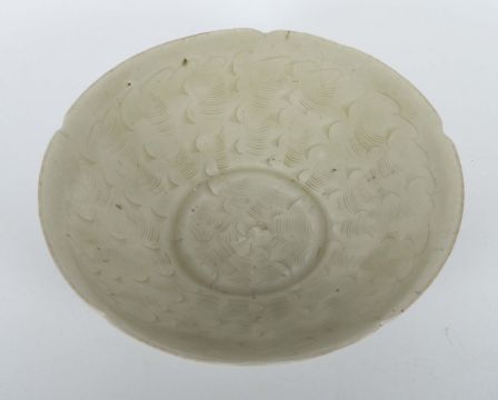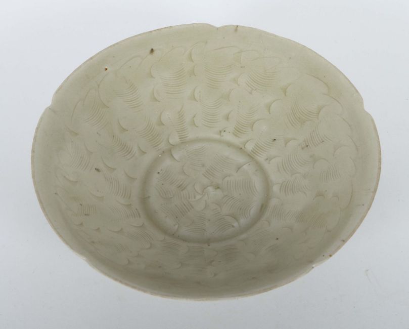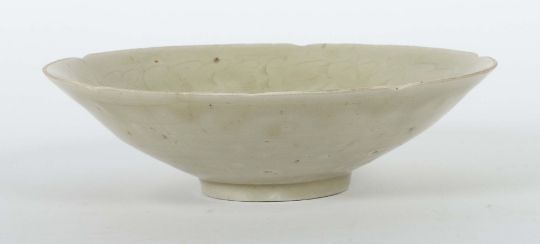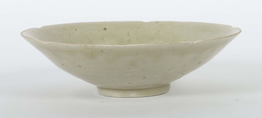 China, Song-Dynastie, 960 - 1279, Steinzeug, grauer Scherben, Unterglasurdekor mit gekämmtem Aufreihungen, schräge Wandung auf kurzer Standkante, die Wandungsmündung vierfach eingekniffen, HxD: ca. 5,5/19,7 cm. 2 Haarrisse. Provenienz: Bayerische Privatsammlung.