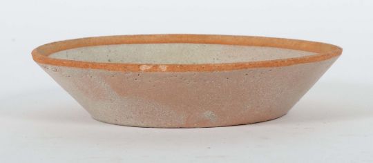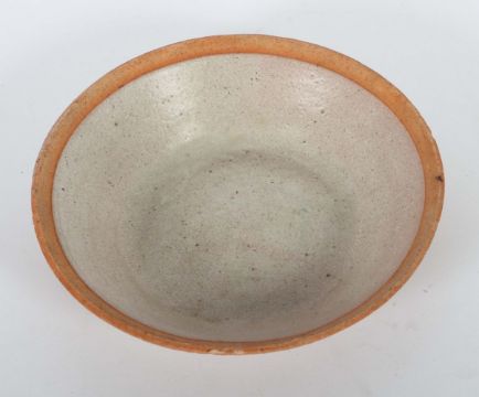China, Song-Dynastie, 960 - 1279, Keramik, roter Scherben, cremefarbene Glasur mit Aussparung am Mündungsrand, Boden mit Pinselsignatur, D: ca. 14,3 cm. Provenienz: Bayerische Privatsammlung.