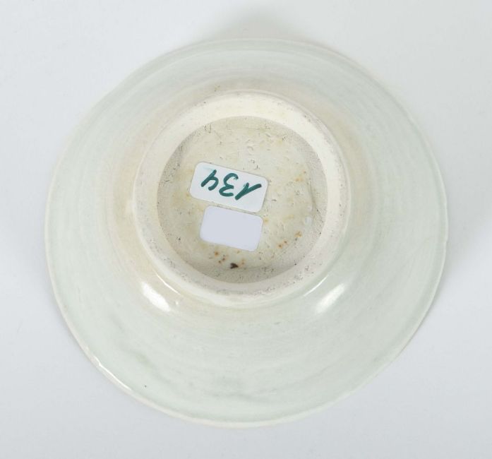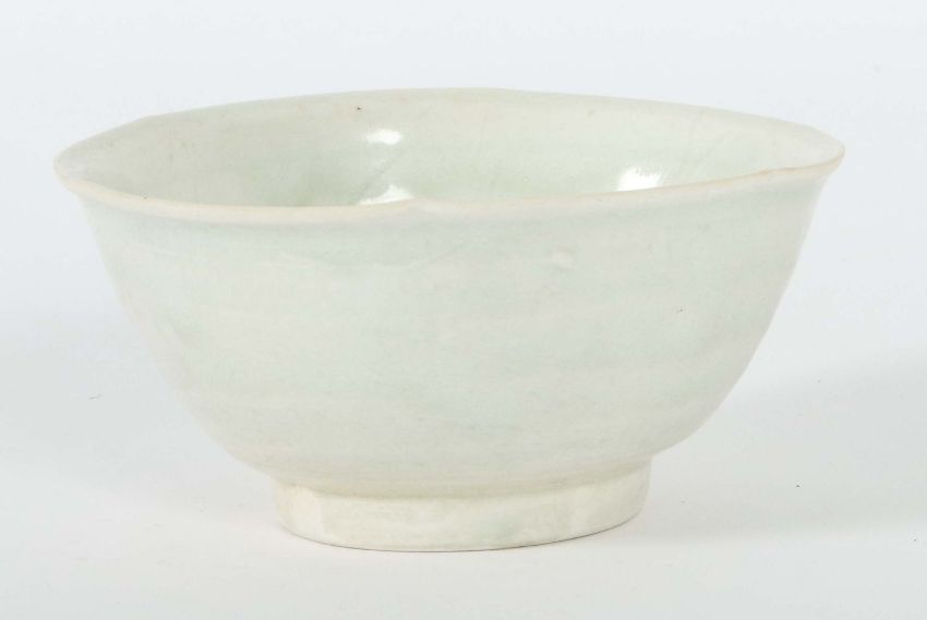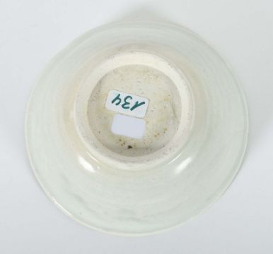 China, Song-Dynastie, 960 - 1279, Feinsteinzeug, glasiert, horizontal gerippte Wandung über kurzer Standkante, die Innenseite in sechs Felder aufgeteilt, gekämmtes Liniendekor, HxD: ca. 5,8/11,9 cm. Haarriss. Provenienz: Bayerische Privatsammlung.
