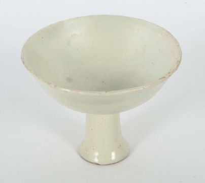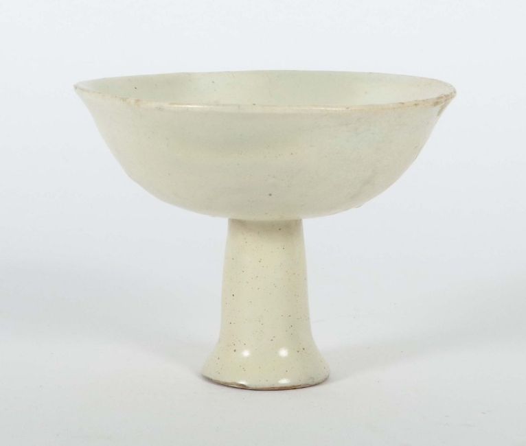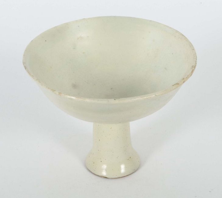 China, Song-Dynastie, 960 - 1279, Keramik, beiger Scherben, glasiert, flach gemuldete Schale über hohem Stielfuß, Mündungsrand leicht ausgestellt, HxD: ca. 9,6/12,2 cm. Provenienz: Bayerische Privatsammlung.