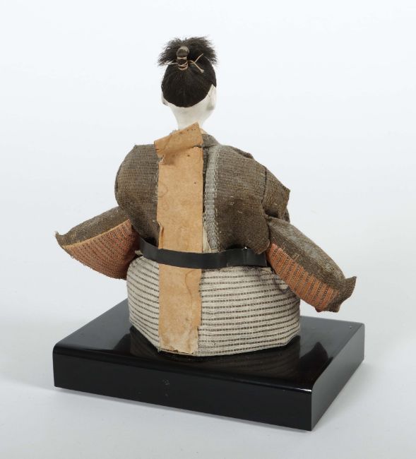 Japan 19./20. Jh., Meij-Periode, sitzender Musiker, H: 20 cm (ohne Plinthe). Stoff besch., partiell verschmutzt.