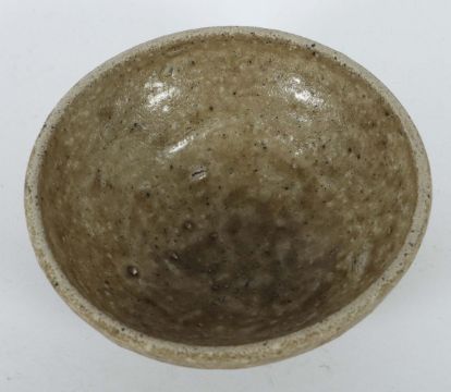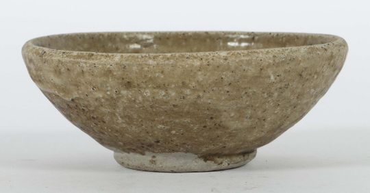 China, Song-Dynastie, 960 - 1279, Steingut, hellgrauer Scherben, seladonfarbene Laufglasur, Strukturoberfläche, kurzer Standwulst mit darüber gebauchter Wandung, HxD: ca. 4,2/11,2 cm. Provenienz: Bayerische Privatsammlung.