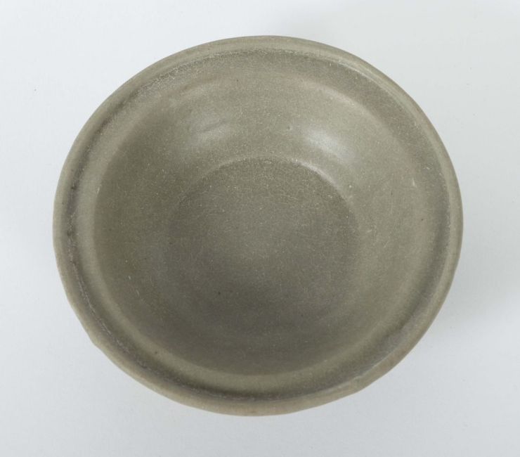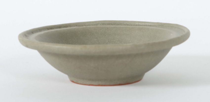 China, Song-Dynastie, 960 - 1279, Lonquan-Keramik, seladonfarben glasiert, gebauchte Wandung auf kurzer Standkante, flache Fahne mit Randwulst, HxD: ca. 3,6/12,2 cm. Provenienz: Bayerische Privatsammlung.