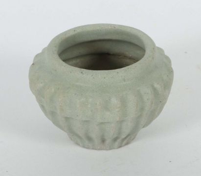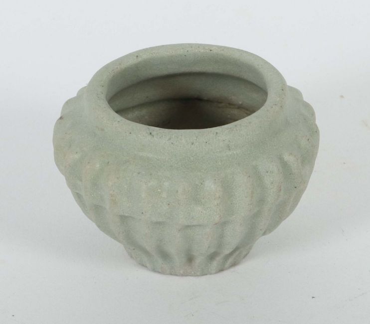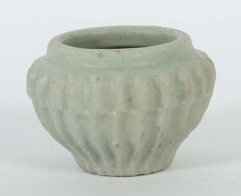 China, Song-Dynastie, 960 - 1279, Steingut, grauer Scherben, glasiert, die Wandung vollflächig gerippt mit Absatz im oberen Drittel, HxD: ca. 5/6,5 cm. Provenienz: Bayerische Privatsammlung.