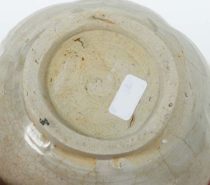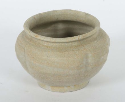 China, Song-Dynastie, 960-1279, Steingut, beige-grauer Scherben, Craqueléeglasur, die gebauchte Wandung sechsfach eingekniffen, kurzer, eingezogener Hals mit ausgestellter Mündung, Gefäß auf Standkante, H: ca, 8,4 cm. 3 Haarrisse. Provenienz: Bayerische Privatsammlung.