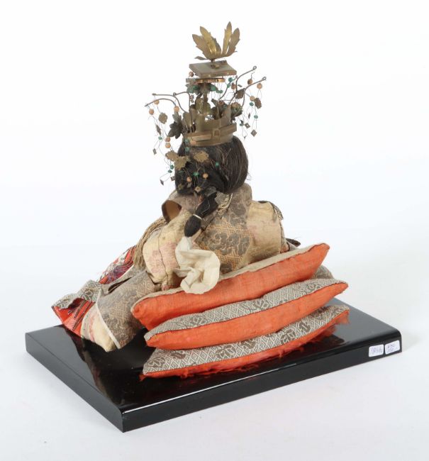 Japan 19./20. Jh., Meij-Periode, sitzende Kaiserin mit Krone, H: 29,5 cm (ohne Plinthe). Stoff ausgeblichen.