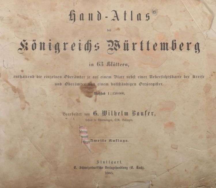 Bauser, G. Wilhelm (bearb.) Hand-Atlas des Königreichs Württemberg in 63 Blättern, Stuttgart,