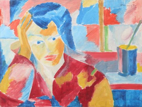 1935 - 2015, Bildhauer, Maler und Grafiker in Stuttgart, Stud. an der Akad. Stuttgart bei Hils. "Ohne Titel", abstrakte, polychrome Darstellung einer nachdenklichen Frau, an einem Fenster sitzend, oben rechts sign. und dat. (19)61, Öl/Leinwand, HxB: ca. 60/79,5 cm. Altersspuren. Provenienz: Direkt aus dem Atelier des Künstlers.