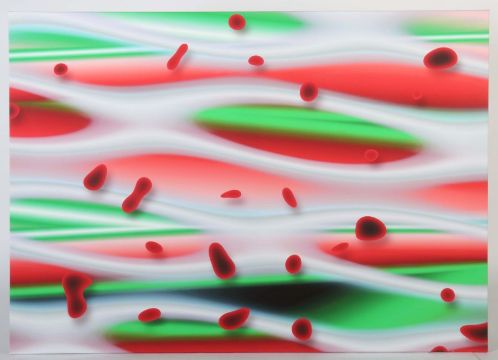 geb. 1950 in Neu-Ulm, zeitgenössicher Künstler, Stud. an der Kunstakad. Karlsruhe. "Chloé", abstrakte Farbkomposition in Rot, Grün und Rosa, verso sign., bet. und dat. 2010, Digitalldruck/Leinwand, HxB: ca. 100/140 cm. Leinwand auf Keilrahmen gezogen.