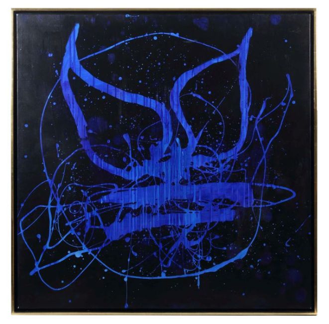geb. 1955, Maler des 20./21 Jh.. "Ohne Titel", abstrakte Komposition in Schwarz und Royalblau, Acryl/Leinwand, HxB: 120/100 cm. Min. Farbabrieb an den Rändern. Mit Rahmen.