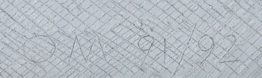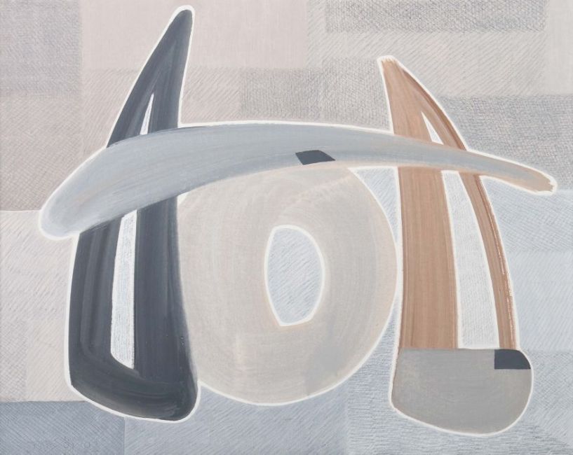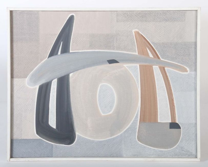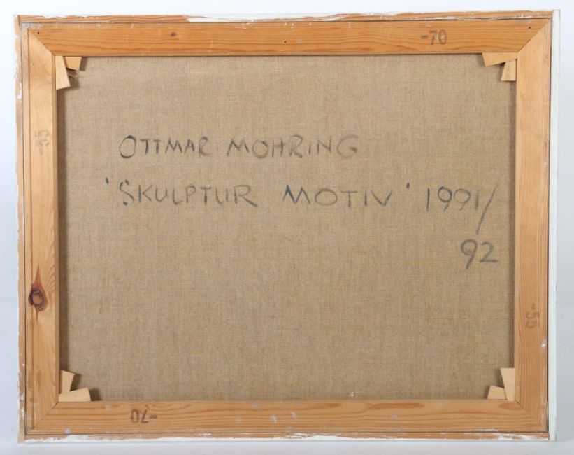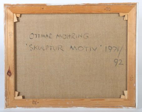 1935 - 2015, Bildhauer, Maler und Grafiker in Stuttgart, Stud. an der Akad. Stuttgart bei Hils. "Skulptur Motiv", abstrakte Komposition in Grau- und Erdtönen, unten links von Hand monogr. und dat. (19)91/92, verso bez., bet. und dat., Mischtechnik/Leinwand, HxB: ca. 55/70 cm. Min. Altersspuren. Mit Rahmen. Provenienz: Direkt aus dem Atelier des Künstlers.