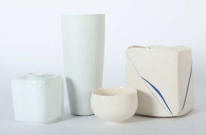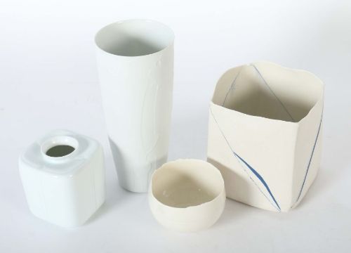 Wohl Deutschland, Mitte/Ende 20. Jh., Porzellan, z.T. außenseitig bzw. innenseitig glasiert, eine Wandung part. eingefärbt, tlw. strukturierte Wandungen, bodenseitig Press- bzw. Pinselmarken, u.a. von Astrid Gerhartz, H: 7,5-25 cm.
