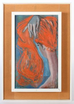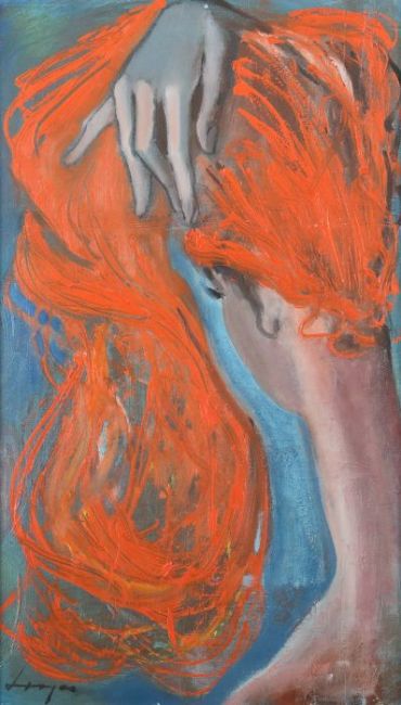 "Rothaarige Schönheit", Rückenteilansicht einer Dame mit hochgenommenen Haaren, unten links undeutl. sign. Öl/Leinwand, HxB: 54/32 cm. Mit Rahmen.