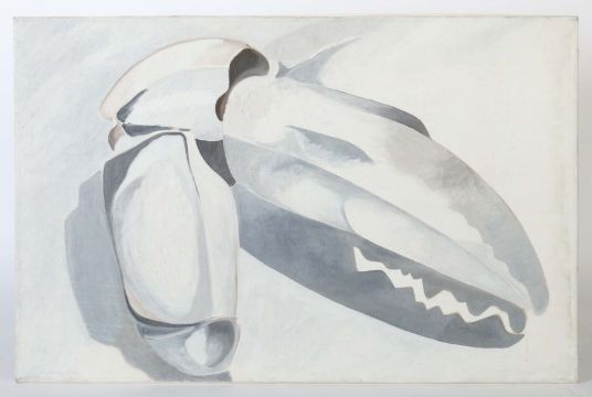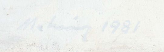 1935 - 2015, Bildhauer, Maler und Grafiker in Stuttgart, Stud. an der Akad. Stuttgart bei Hils. "Ohne Titel", abstrakte Komposition in Grau und Weiß, wohl als Studie für eine Plastik, unten links sign. und dat. 1981, verso bez. und dat., Öl/Leinwand, HxB: ca. 75,5/115 cm. Craquelée, min. Farbabplatzer. Provenienz: Direkt aus dem Atelier des Künstlers.