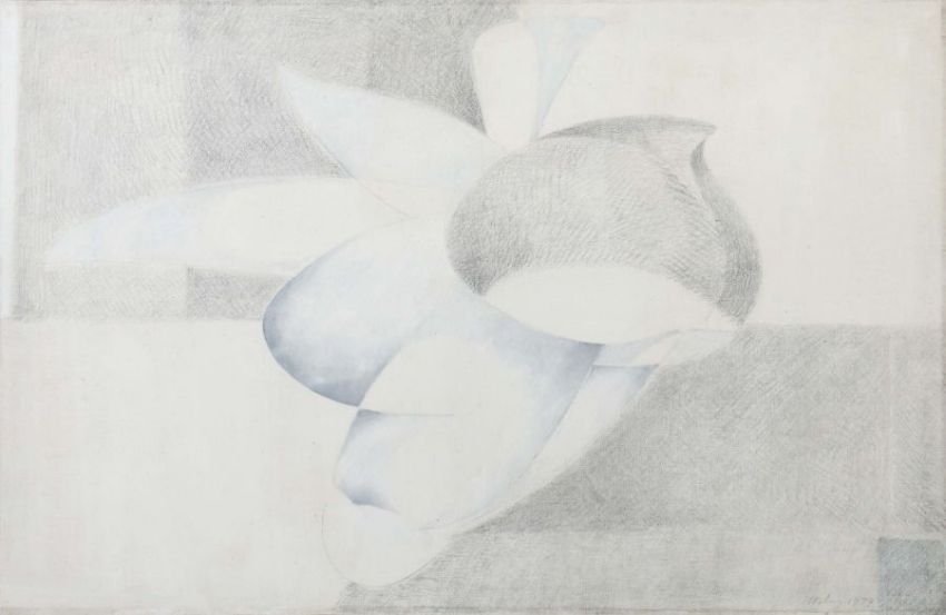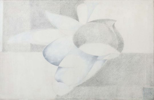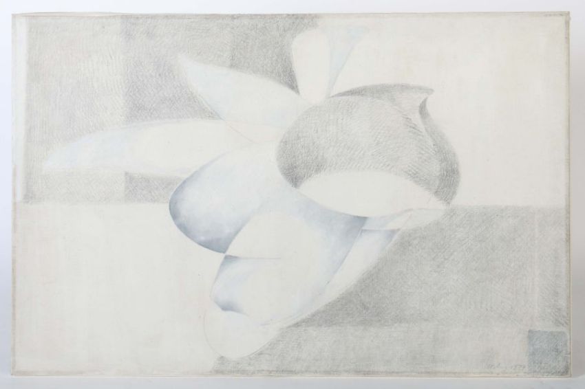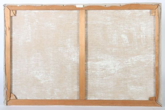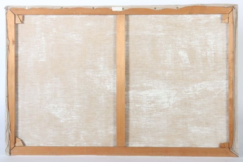 1935 - 2015, Bildhauer, Maler und Grafiker in Stuttgart, Stud. an der Akad. Stuttgart bei Hils. "Ohne Titel", abstrakte Formenkomposition in Grau-Blau und Weiß, unten rechts sign. und dat. 1979, Mischtechnik/Leinwand, HxB: ca. 75,5/114,5 cm. Altersspuren. Provenienz: Direkt aus dem Atelier des Künstlers.